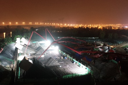 5月12日晚9時,安徽省交通建設股份有限公司廣德路項目8號承臺大體積混凝土首層澆筑順利完成。