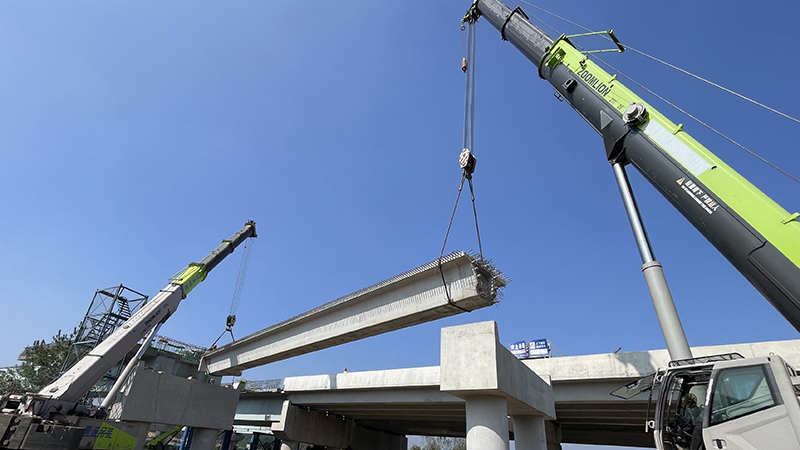 此次架設(shè)的是涼亭樞紐A匝道橋第五聯(lián)25米連續(xù)箱梁,梁板重78噸。為確保首片箱梁的順利架設(shè),項(xiàng)目部多次組織召開運(yùn)梁、架梁專題會(huì)議,制定了完善的吊裝和應(yīng)急預(yù)案,對(duì)作業(yè)人員進(jìn)行安全技術(shù)交底。同時(shí)積極聯(lián)系屬地政府、交警等單位,提前做好運(yùn)梁規(guī)劃路線,交通引導(dǎo)等工作,確保運(yùn)梁過程的安全性。施工過程中,項(xiàng)目技術(shù)和管理人員全程跟蹤,嚴(yán)格執(zhí)行吊裝作業(yè)安全操作規(guī)程,實(shí)現(xiàn)了首片箱梁的安全精準(zhǔn)架設(shè)。