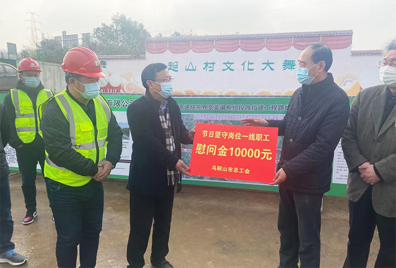 1月28日上午,馬鞍山市人大常委會黨組成員、一級巡視員、市總工會主席楊勇義一行深入安徽省交通建設(shè)股份有限公司承建的寧蕪改擴建黃梅山保通線項目部,慰問一線員工,值此新春來臨之際,把黨和政府及工會組織的溫暖送到奮戰(zhàn)一線的員工手中。