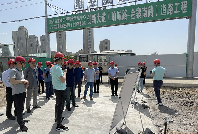 5月8日上午,由肥西縣重點工程建設(shè)管理中心主辦的項目觀摩交流活動,在安徽省交通建設(shè)股份有限公司創(chuàng)新大道項目現(xiàn)場舉行。肥西縣重點工程建設(shè)管理中心主任范熹穎、副主任方平、黨組成員及項目管理科室負責人等一行出席觀摩活動。