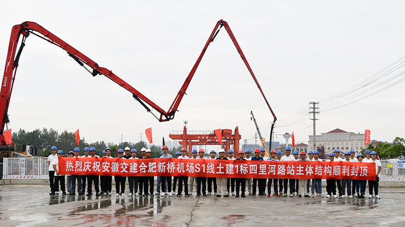 近日,由安徽省交通建設(shè)股份有限公司承建的合肥新橋機(jī)場(chǎng)S1線土建施工總承包1標(biāo)四里河路施工現(xiàn)場(chǎng),伴隨最后一塊頂板的澆筑完成,標(biāo)志著四里河路車站主體結(jié)構(gòu)順利實(shí)現(xiàn)封頂。