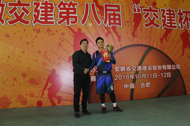 在閉幕式上,安徽交建領(lǐng)導吳學懿、陳明洋、吳小輝、柳欣分別為冠軍、亞軍、季軍和MVP頒發(fā)獎杯并表示祝賀。最后,吳總宣布本屆籃球比賽圓滿落幕,期待明年再會!