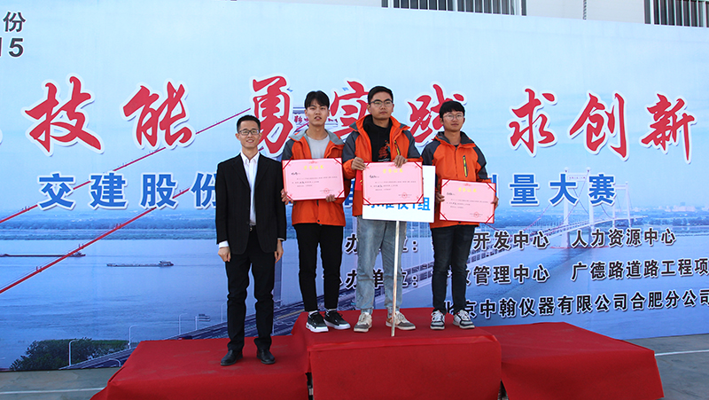 最后,交建股份副總裁吳小輝、技術開發(fā)中心總經(jīng)理宣菲分別為獲得全站儀組、水準儀組團體第一名頒發(fā)證書和獎金并表示祝賀。至此,交建股份第三屆施工測量技術培訓暨施工測量大賽圓滿落幕。