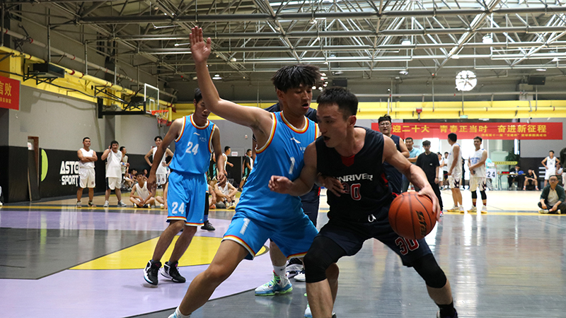 隨著一聲哨響,東、西兩側(cè)場地運動員在裁判拋出的籃球面前,屈膝發(fā)力,伸直手臂,“啪”的一聲,完成跳球,比賽正式開始。賽場上球鞋摩擦地面,籃球砸地的聲音此起彼伏,場周吶喊助威的聲音不絕于耳。此時的他們拋下平日里工作時的嚴肅形象,身影矯健、防守周密,拼盡全力奮力廝殺,他們勇敢果斷、活力無限。他們用精湛的球技和堅韌拼搏、誓不言敗的精神,為觀眾們奉獻了許多精彩的瞬間。