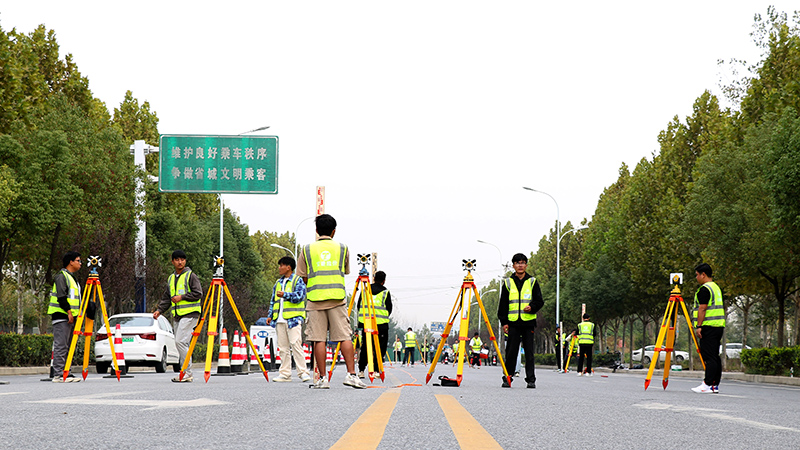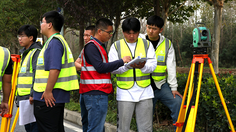 次日上午,在安徽交建大連路項目竣工封閉路段,學員早已準備充分、躍躍欲試。在“全站儀對點賽”和“水準+導線”技能競賽,導師互換小組以裁判的身份進行全程跟蹤,依據(jù)各組完成時間、操作規(guī)范性、測量結果以及第一天的理論成績綜合評判最終結果。